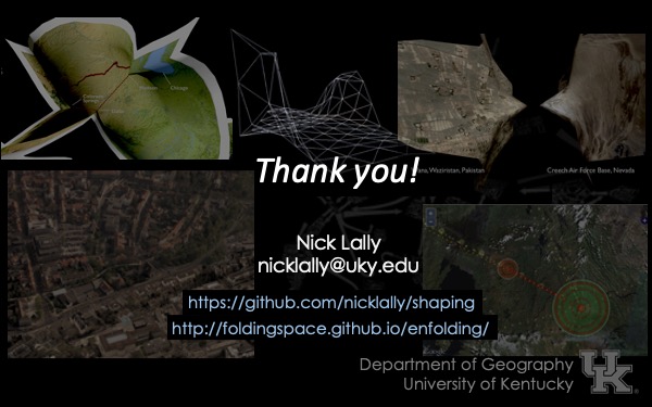 For example, spatial theory in human geography describes space as relational, processual, paradoxical, topological, etc., so why should we settle for the narrow, mathematical description of space offered by GIS? What are the expressive possibilities for cartography when we treat space as an always unfinished matter of concern?