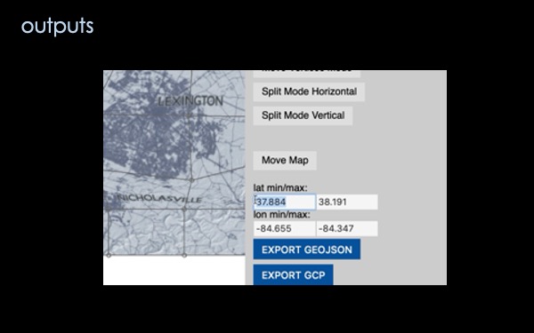 They can then output the modifications as a geojson of linestring pairs or as ground control points (GCP).