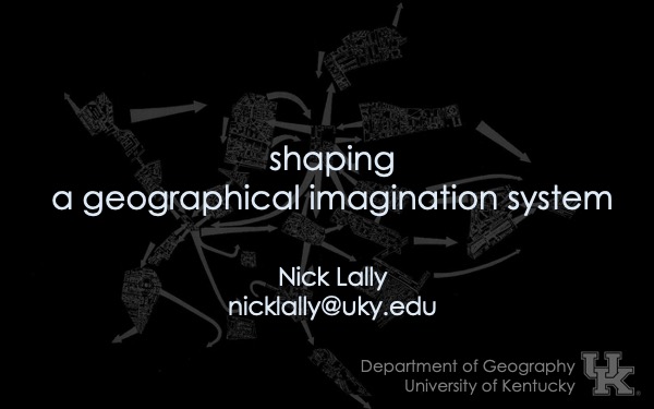In this talk, I am going to introduce a tool I've been working on that I call "shaping," but first I will talk a bit about what I mean by "geographical imagination systems"