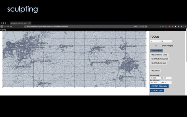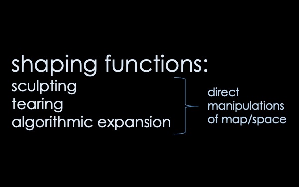 I built the second gis, shaping, with the desire to have more direct manipulations of space, allowign the user to sculpt, tear, and algorithmically expand parts of a map